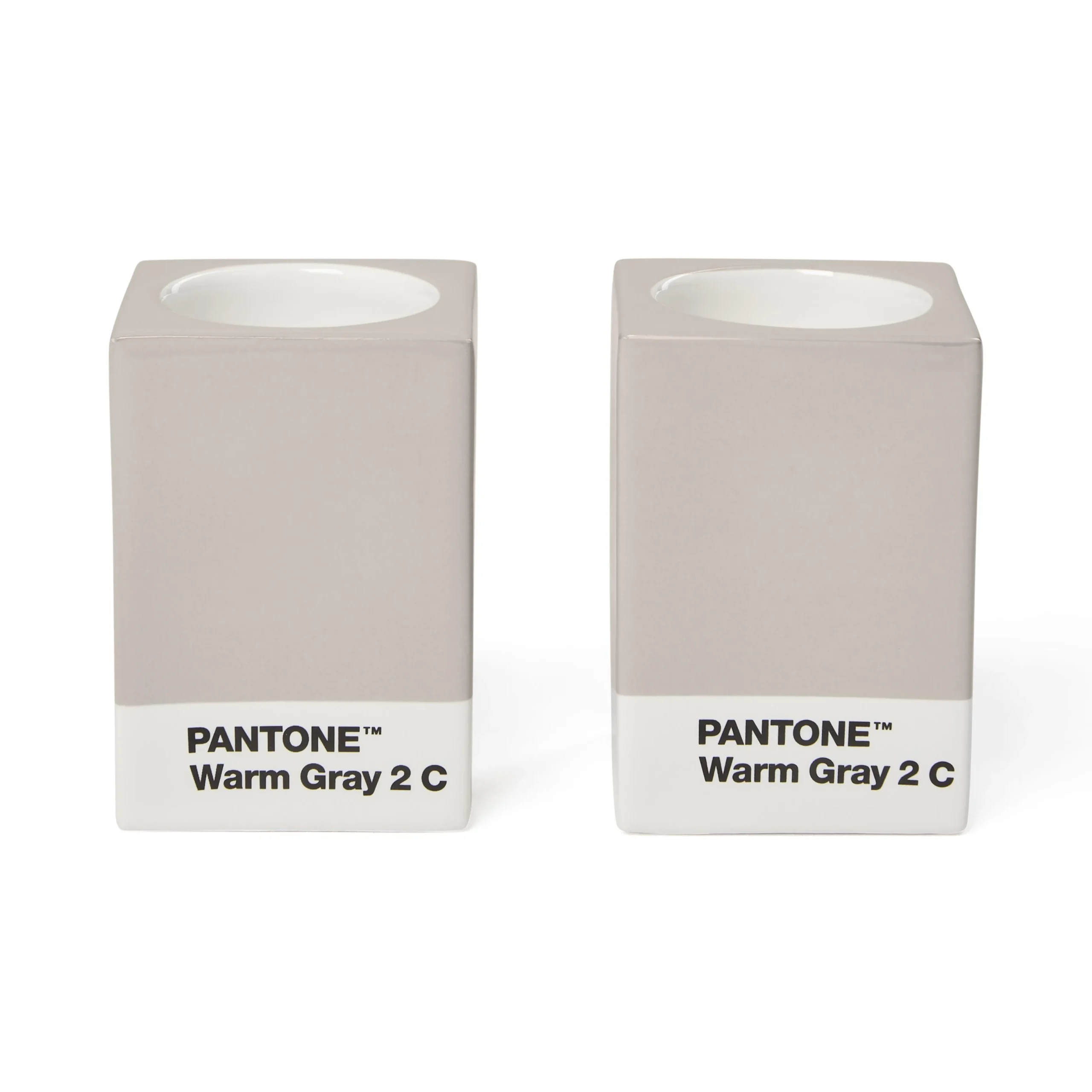 Pantone Warm Gray 2 Gri İkili Porselen Mumluk Seti